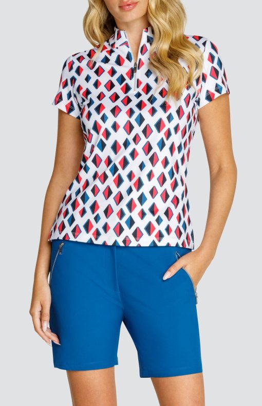 The Erandi short sleeve golf top features a squared mini mock neck and vents. Made with our wrinkle-resistant, moisture-wicking Performance Jersey fabric, it will continue to be a staple in your wardrobe wash after wash. And the UPF 50+ protective technology that is built-in to the fabric will give you peace of mind as you play under the sun’s harmful rays.