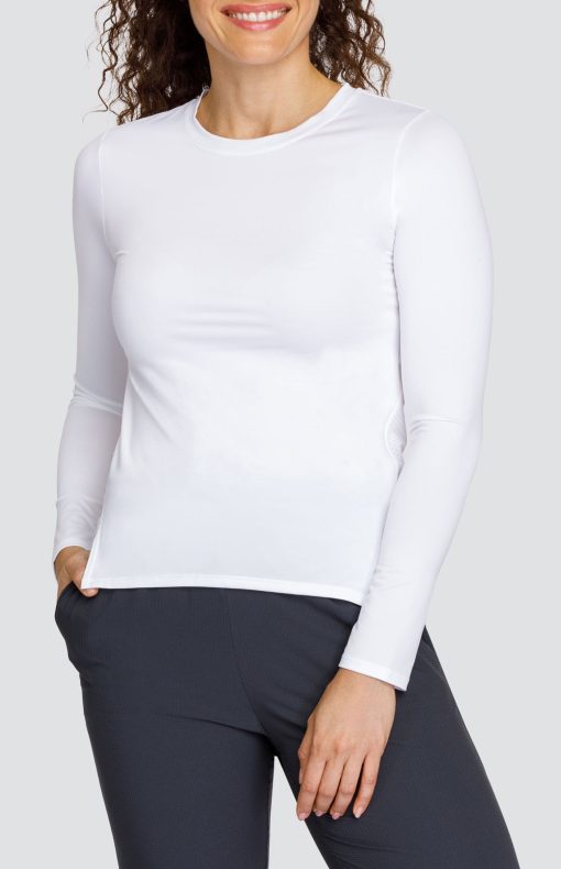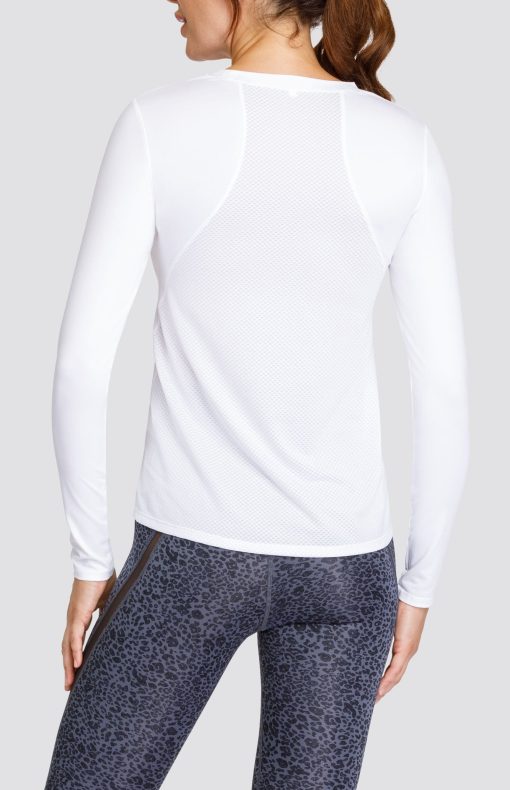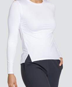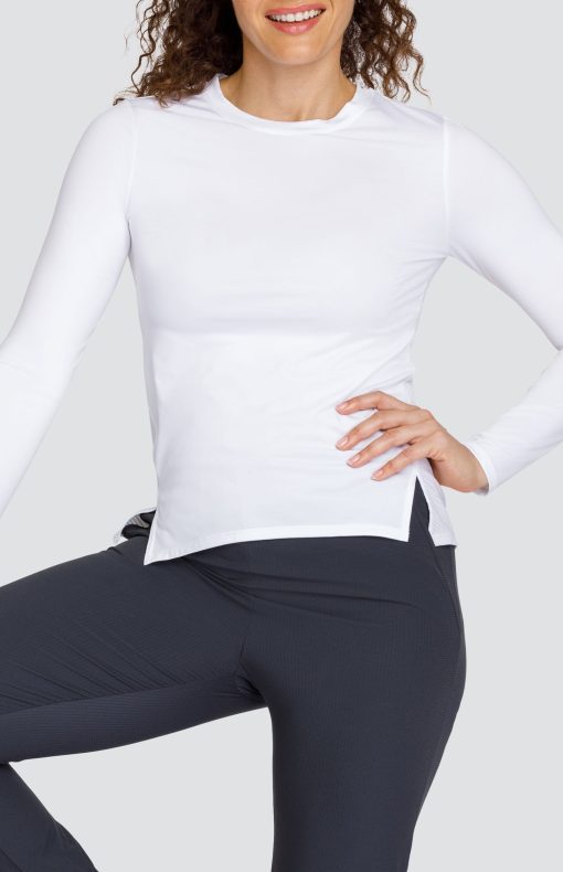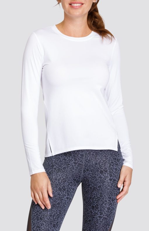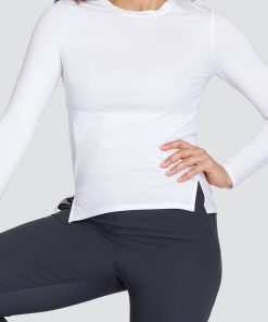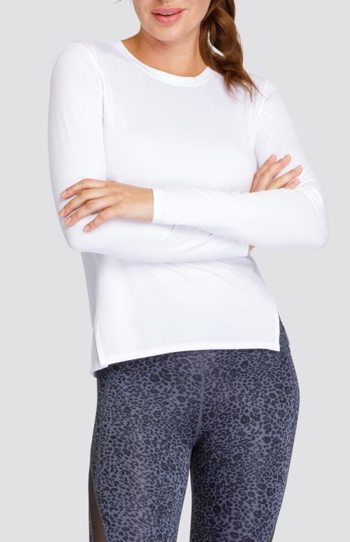 From our Tail Active collection. The Gracen Top is perfect for cooler weather or some additional coverage. The back insert and the high-lo hemline create a beautiful flowing effect without too much pomp and circumstance.