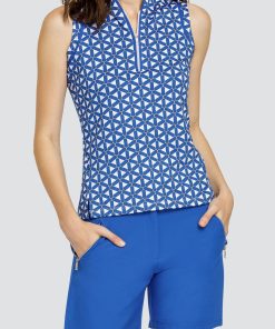 - Quarter-zip sleeveless golf top with mandarin funnel neck, piping, and vents