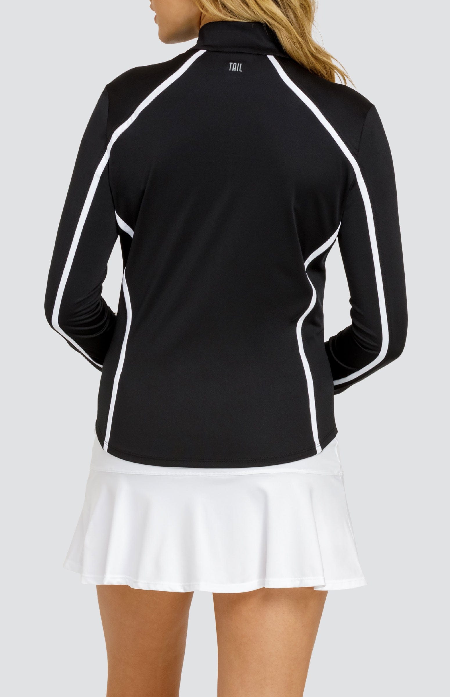 Meet your new favorite jacket, the Samaris, featuring a funnel neck, pockets, and flat piping accents that create a flattering silhouette. Made with our wrinkle-resistant, moisture-wicking Performance Jersey fabric, it will continue to be a staple in your wardrobe wash after wash. And the UPF 50+ protective technology that is built-in to the fabric will give you peace of mind as you play under the sun’s harmful rays.